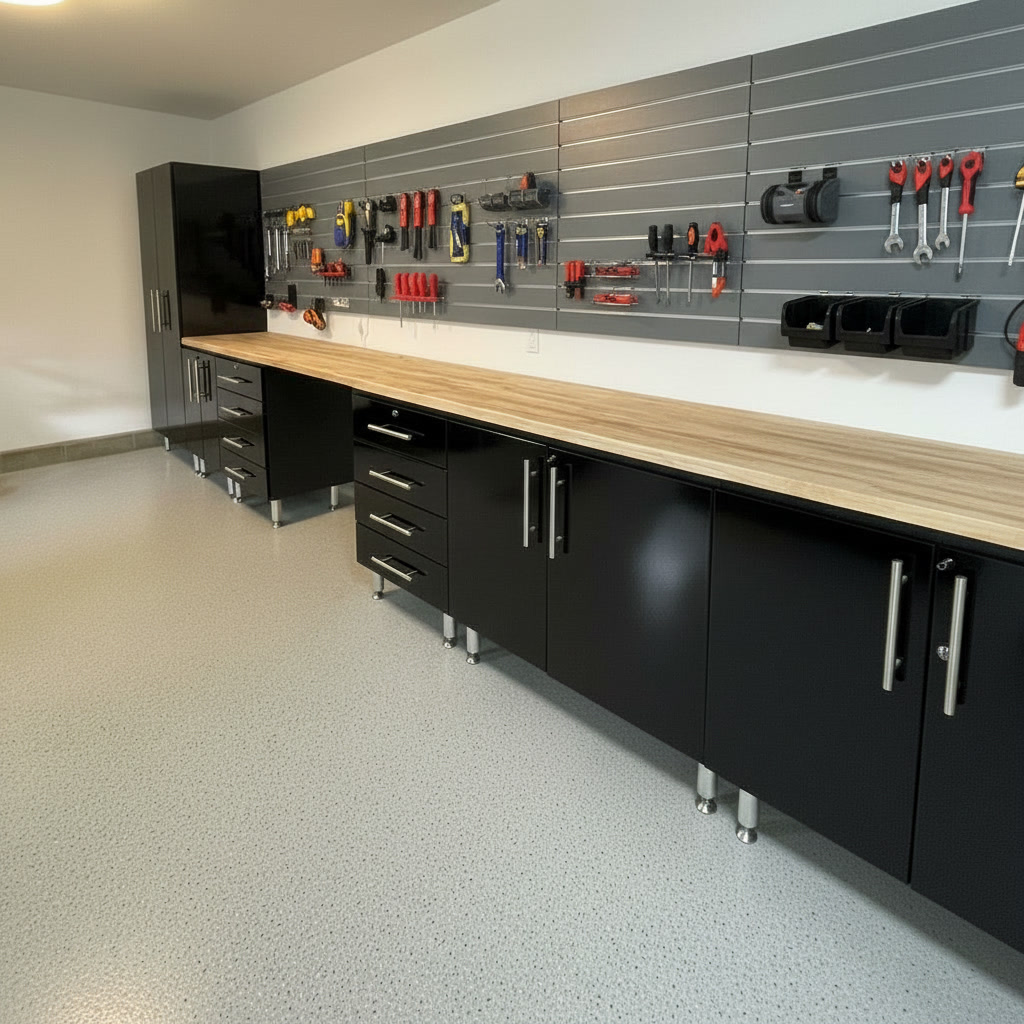 Explore real garage transformations featuring custom flooring, storage, and wall solutions.